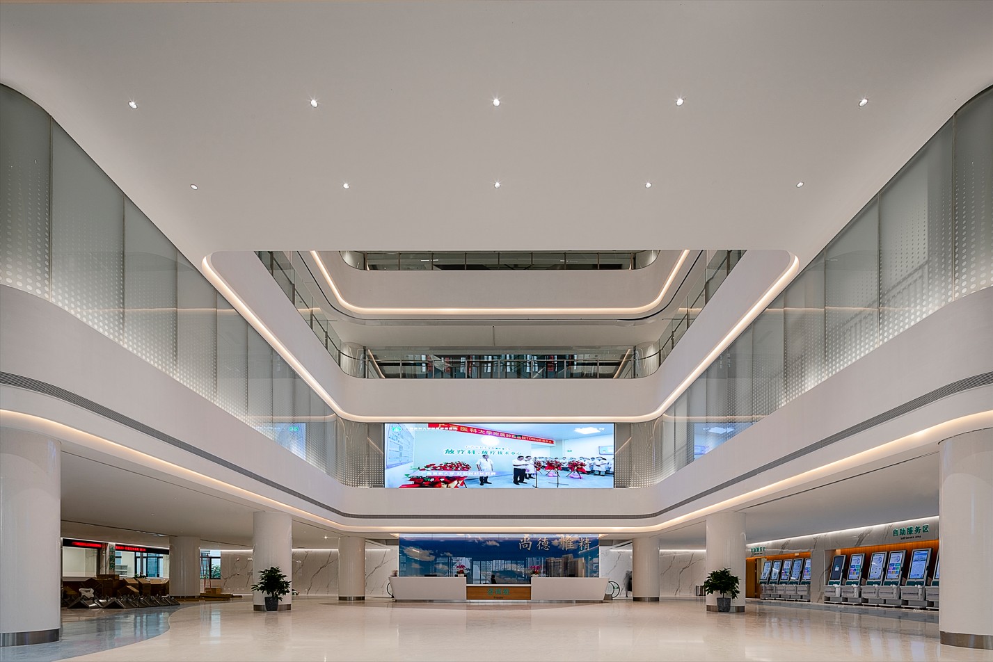 设计理念:强调五象新区医院的城市公共性、社会使命感契合医疗建筑空间属性融入时尚现代流线型设计,竖向韵律配合强调稳定升腾动感的缓起伏曲线,形成流动的秩序美与韵律美。