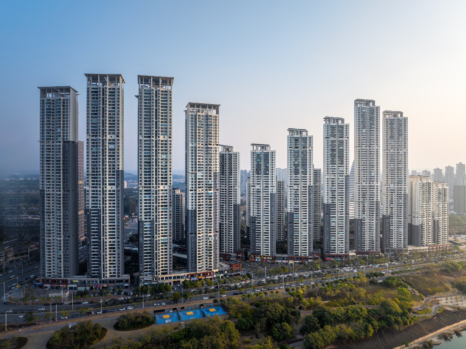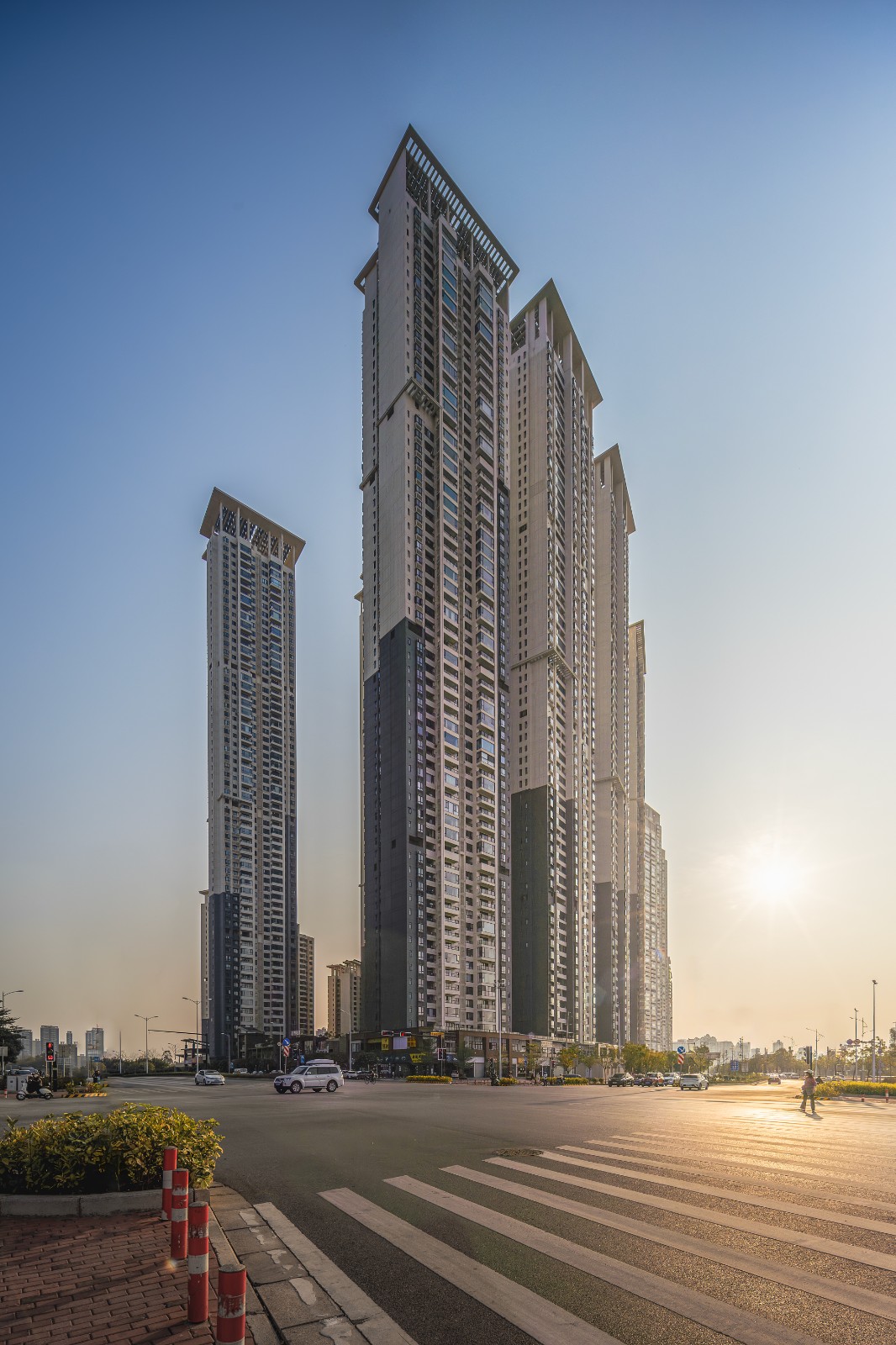 技术难点:5栋塔楼住宅为超A类高度,11栋塔楼为超B类高度存在高度超限、凹凸不规则、楼板不连续、扭转不规则等不规则项。结构设计通过合理的结构布置和详细深入的计算分析论证。采用剪力墙结构其结构体系规则、侧向刚度和承载力治结构高度变化均匀,没有出现明显的结构软弱和薄弱部位。对结构关键部位和关键构件细致的计算分析和采取有效的构造措施。