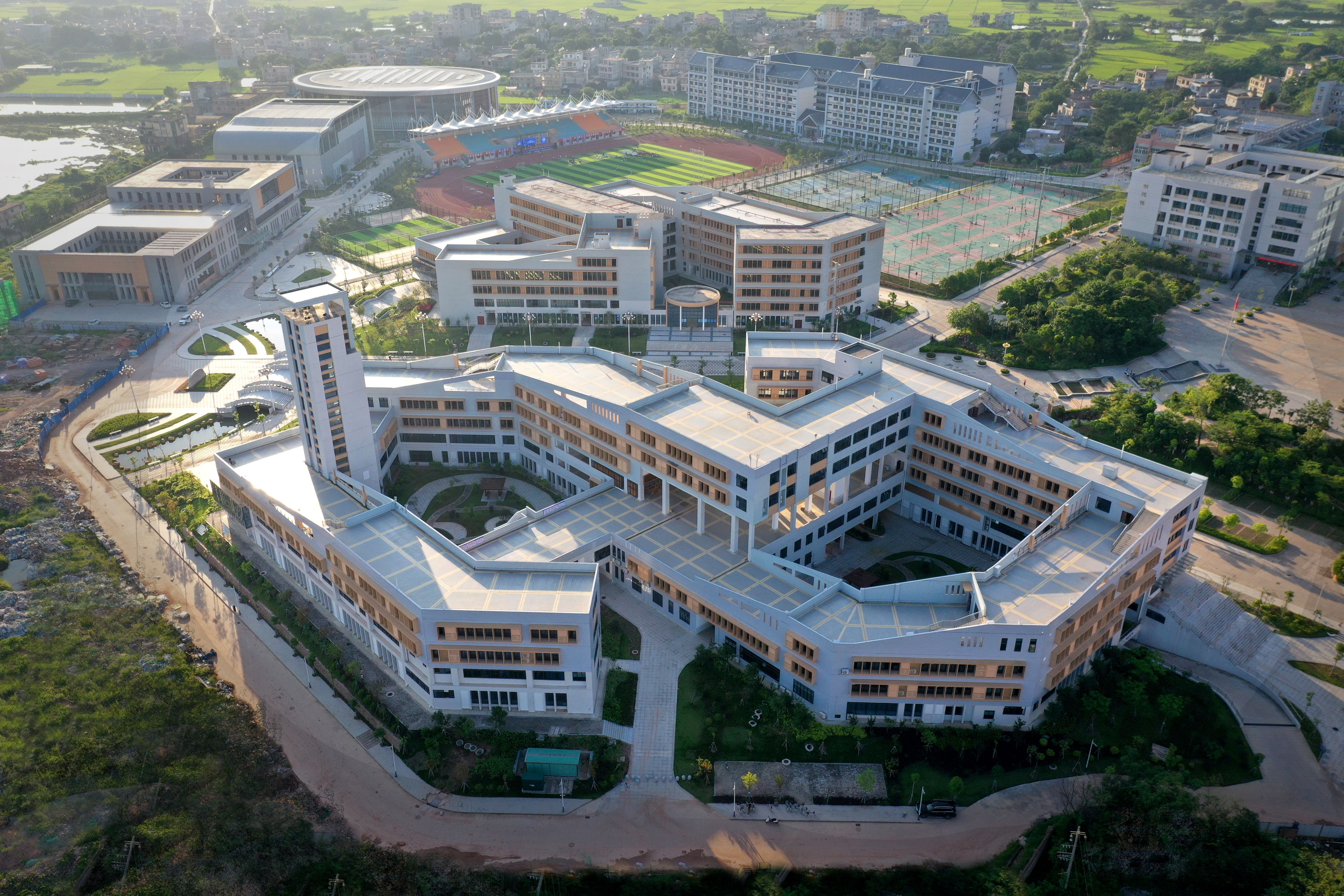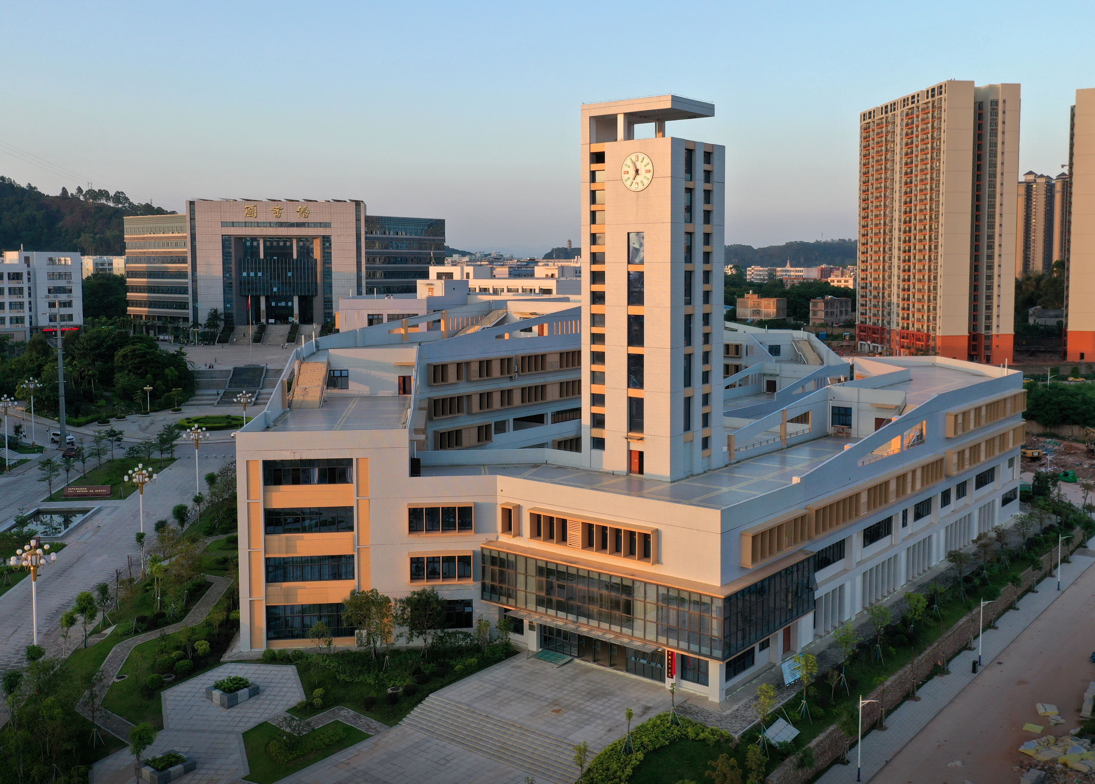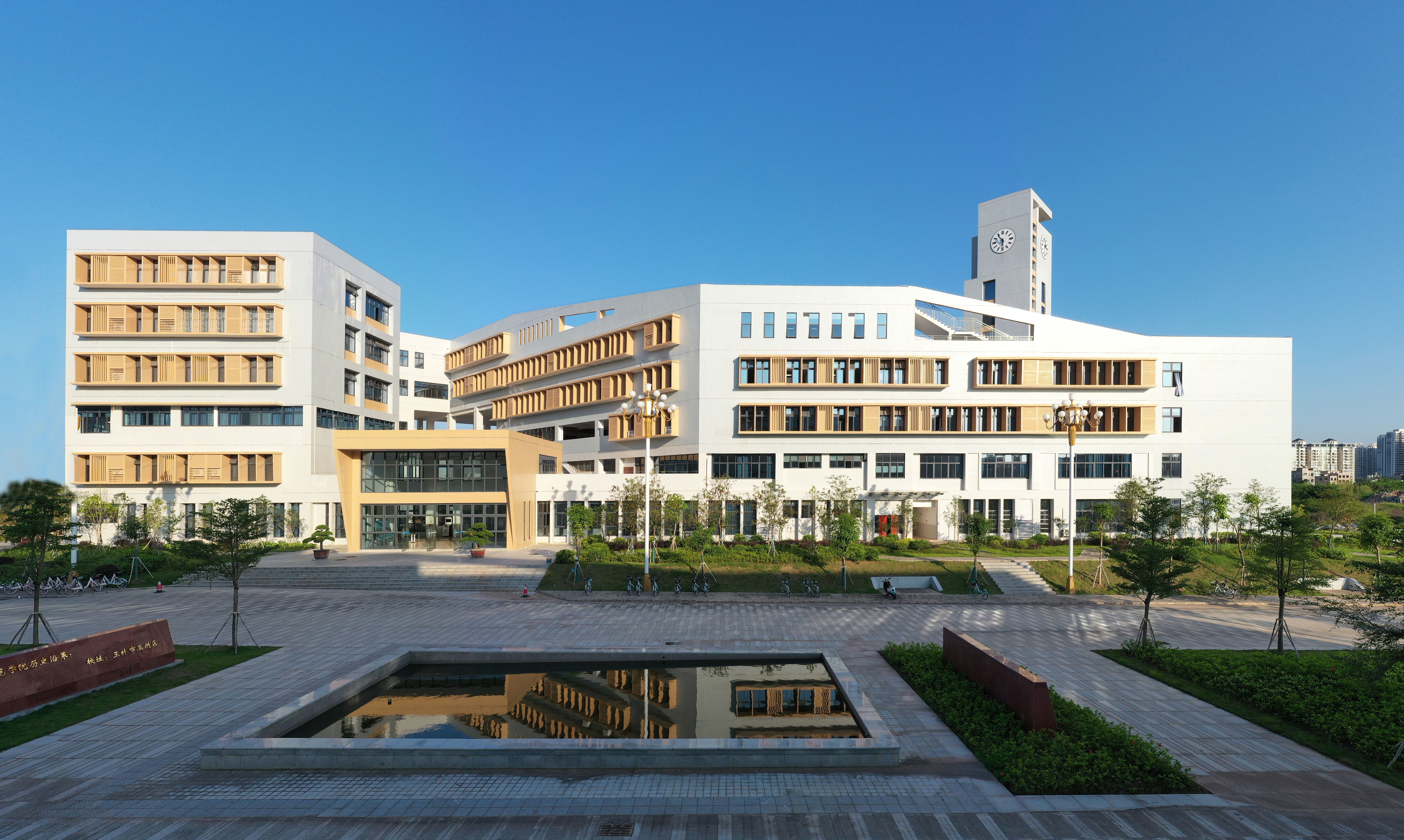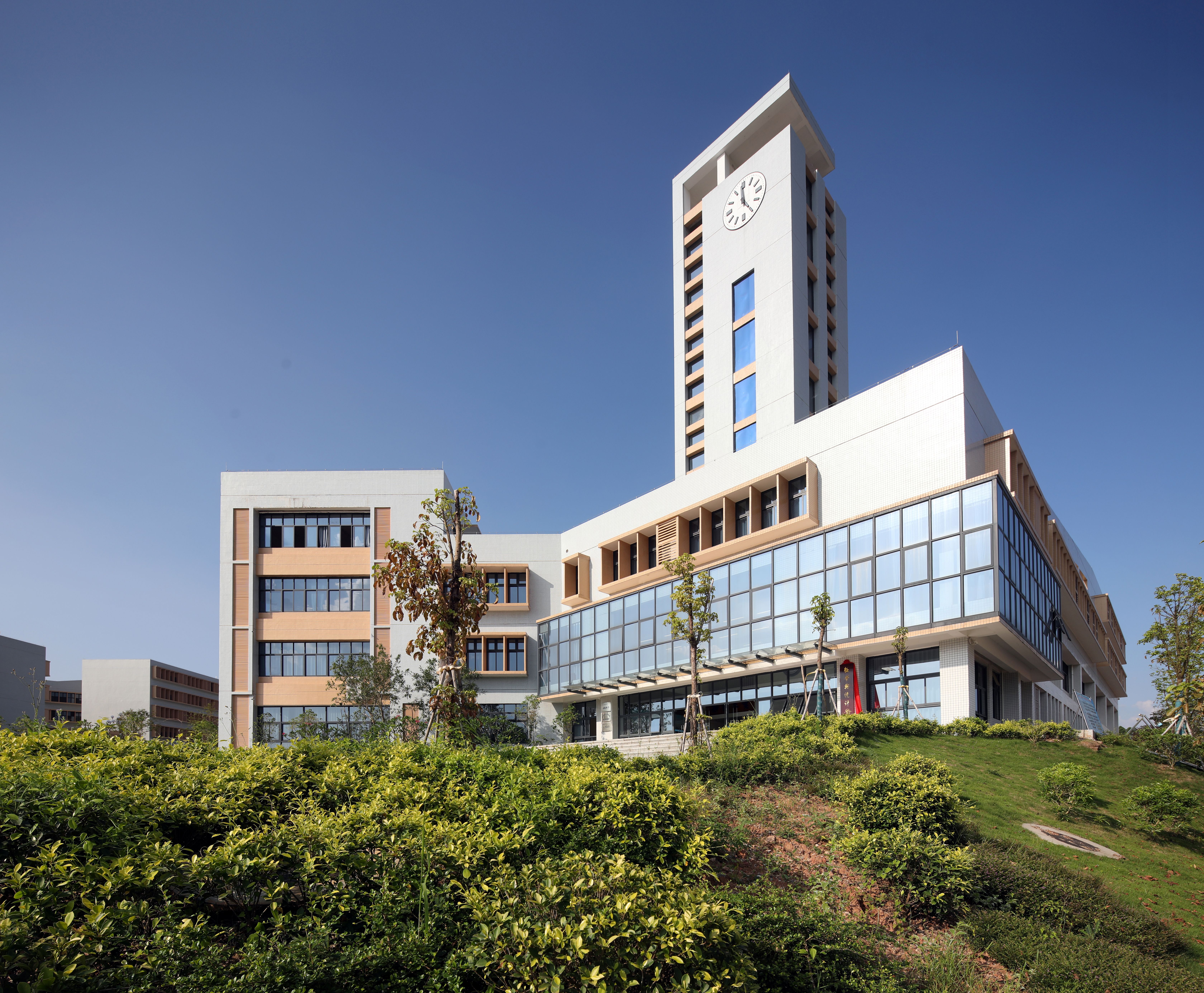 4、形象新颖,现代典雅:建筑造型具备简洁、端庄、活泼的气质。建筑群体高低起伏、错落有序,营造出典雅、理性美的校园文化氛围。