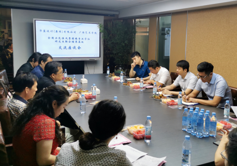 会议由华蓝设计(集团)有限公司景观院院长李儒涛主持,双方相关部门领导出席了签约暨揭牌仪式,就如何借助培养基地加强科研创优、项目建设,落实人才输送、创新培养等事宜进行深入探讨,并与广西艺术学院优秀校友代表座谈交流。