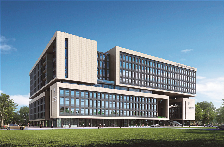 创新实验大楼采用简洁的现代风格,通过明快的体量划分,出挑的边框处理,利索的虚实对比,整洁有序的 横向竖向线条的铺叙,塑造出一稳重又清爽的简约形象。