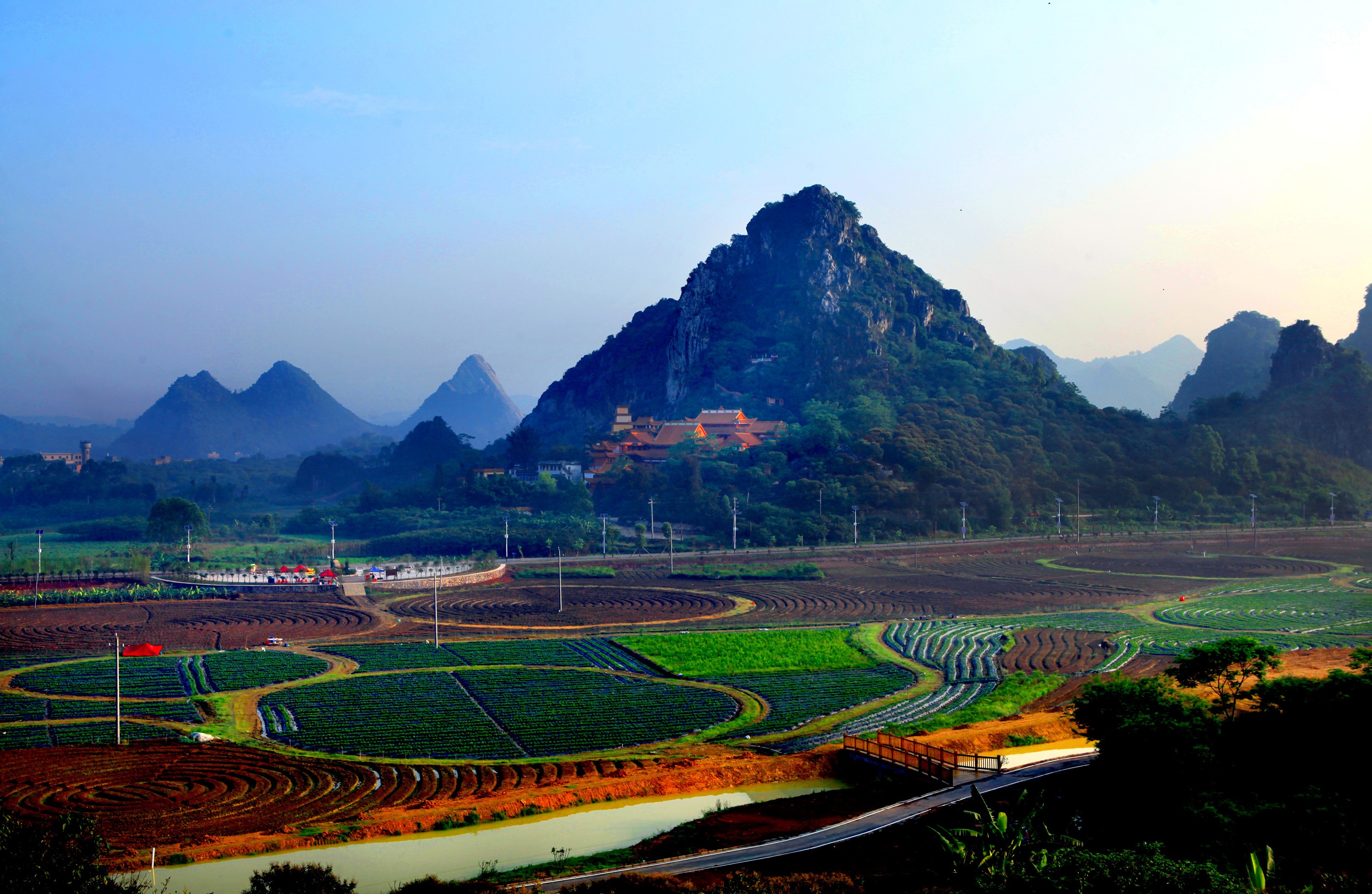 玉林市“五彩田园”现代特色农业示范区桂园项目距玉林市中心城区10公里,是一个主要以展览、会议、辅助用房为一体的仿古建筑群。玉林现代特色农业示范区中部设有一个荷塘,场地为坡地果园,植被覆盖较好。园区北面有一个鱼塘和一个200亩的规划市民农场,能满足前来旅游观光的游客品尝时令季节果蔬。园区四周树林浓密,山环水绕,这样的环境造就了空气中负氧离子及植物精气含量较高,气候环境宜人,四周没有群落建筑,适宜游客开展娱乐休闲活动和公司组织年会等会议。